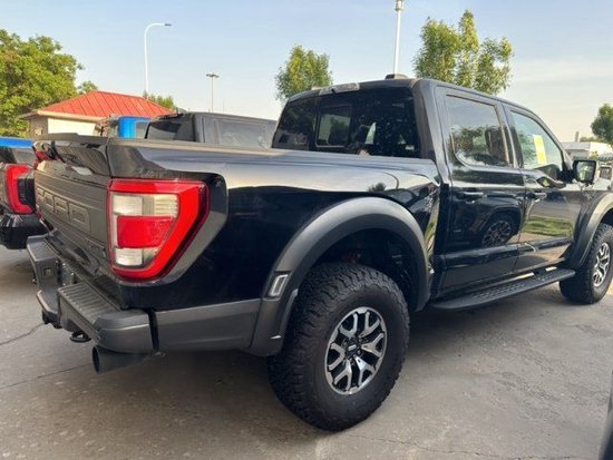 福特F150 23款 3.5T Raptor猛禽 高配平行进口猛禽比中规4S店多了一下配置:33匹马力、博华格纳4A能智四驱模式、前桥托森差速锁、拖车反控向制、后排椅座下方储物盒、中网3个小黄灯、雾灯、前后轮眉示宽灯、隐私玻璃、后玻璃小开窗启、广角摄像头、钢制越野脚踏板。
