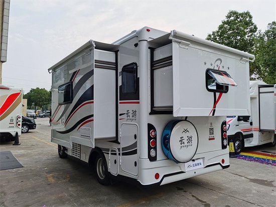 在配置上云游房车也并没有让人失望,133-2195-6679车身配备房车专用遮阳篷、LED灯带、电动踏步、野餐桌、外挂野餐桌板、5公斤煤气罐仓+外抽拉燃气灶、六路监控摄像头、驻车支腿、电源充电口、水箱注水口、外置淋浴花洒、以及备胎悬挂、黑水箱马桶区、贯通式超大储物舱等一整套能露营、能野炊的设备,将极大地减少旅行中所带来的各种不便。