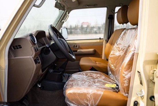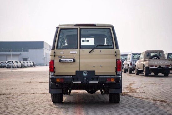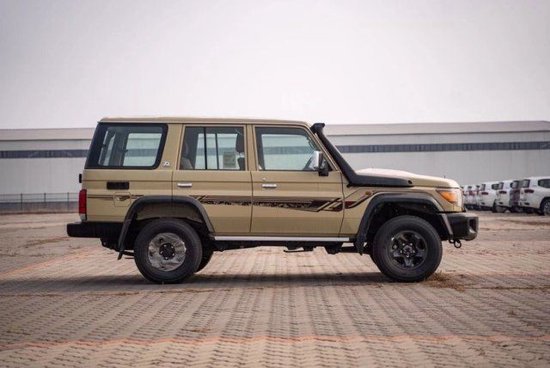 配置:23款 中东版丰田LC76 绞盘、涉水喉、桃木内饰、桃木方向盘、棕色真皮座椅! 最高配置:汽油4.0 1⃣️白/棕 5速手动变速箱 、130升油箱、 分时四驱、前差速器锁、后差速锁、 16英寸越野铝合金轮毂265/70R16、 刹车配备:前盘。后鼓、前悬螺旋弹簧、后悬板式弹簧 、 越野性能:ABS+VSC+BA+EBD+HAC+ATRC、 2气囊、彩色保险杠、白车/黑杠、 高位刹车灯 、镀铬外后视镜。带电动调节 、侧踏板 、数字时钟、五座 、半自动空调 、 熏黑大灯、电动门锁 、电动车窗 、 收音机 CD 、蓝牙 、双扬声器 、胎压监测 、 USB快速充电 、前雾灯 、后雾灯 、手套箱锁带钥匙 、日行灯、徽章、脚垫、黑色轮眉、散热格栅、原车新款彩条!