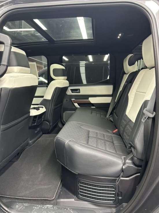 2023款丰田坦途车内乘坐、后排座椅宽大,足以满足身高195cm的贵宾,第二排座椅可以完全折叠收起,为乘客提供更宽敞的腿部空间,已经达到了中大型车的水平,完全可以满足舒适乘坐的需求,部分特殊的装载给您的路途更添信心。