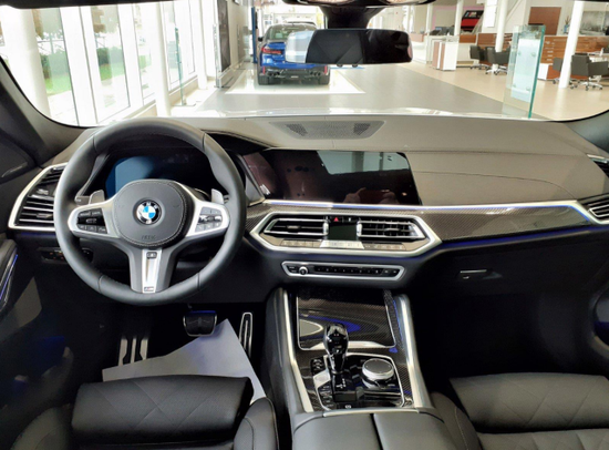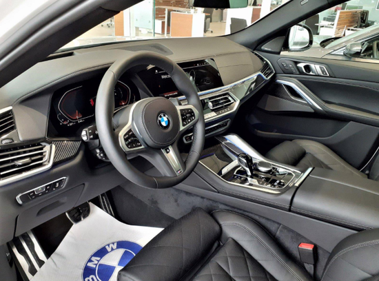 就内饰整体而言,宝马X6更强悍。三幅式的方向盘的造型运动感充盈,操作灵活,还可选配加热功能。中控采用塑料,皮质,金属材质,用料和做工看起来中规中矩,配备一块12.3英寸触控屏,显示清晰且设计也比较奢华,前排还配备有双温区自动空调控制系统,自由调试最舒适的空间氛围。软包材质的座椅宽大