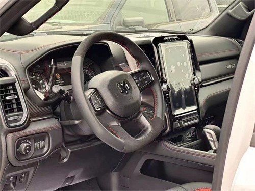 22款道奇霸王龙内饰部分进一步强化了其高性能版本的形象,中控台和座椅随处可见的TRX标识便是最好的例证。同时,作为道奇家族的旗舰车型,新车还配备了12英寸竖置中控屏幕,除了支持蓝牙、导航和车载Wi-Fi等常见功能,还支持AppleCarPlay和Android Auto手机映射