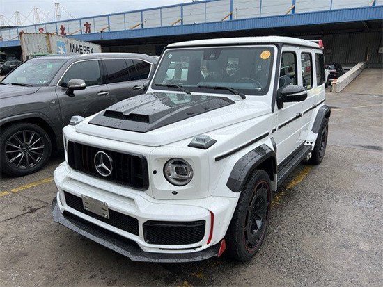 奔驰G63 (配置|询价)前大灯得到了升级圆形LED日行灯内还有方形大灯,外圆内方的造型力量感十足,仔细观察后视镜也变得圆润了。