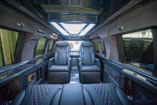 GMC商务车首领级商务车秉承了美国奢华房车的一贯风格,外形高大威猛,辅以大型双对拉式中门及高顶规划,并且选用了很多镀铬饰件,能够说只需置身于该车中,到处都能感受到其所显示的君临天下的霸气。