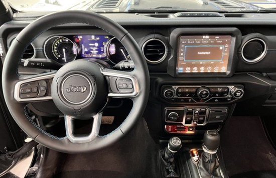 牧马人4xe的车内采用了大面积的皮质材料包裹,让车内的时尚感和高级感得以体现,中控台三个圆形的空调出风口周围采用了银色装饰,为新车的内饰增添了些许精致感,7英寸的液晶仪表显示效果清晰,功能简单易懂,让人一目了然,再加上8.4英寸的中控屏幕,让新车的内饰更具科技感,同时中控屏幕还支持CarPlay/CarLife手机互联映射,以及多功能语音识别系统,为用户的日常操作提供便捷性。此外,新车还配备了真皮包裹的三幅式多功能方向盘,同时支持手动四向调节,并且还带有加热功能。