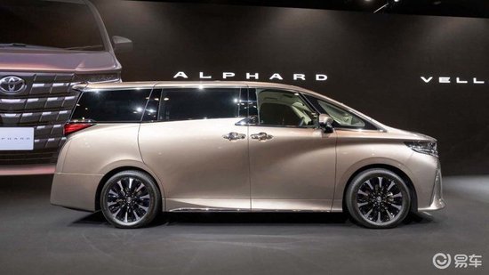 车身侧面,全新埃尔法的风格大变,它的B柱的下方有一个类似回旋镖的造型。同时新车还采用了多辐式轮毂以及后排隐私玻璃。车尾,新车将现款的尾部大面积镀铬饰板改为黑色饰板,看起来更加年轻且运动化。车尾中央有“ALPHARD”英文标志,尾灯组的设计相比现款车型更为平直、简洁,科技感更强。