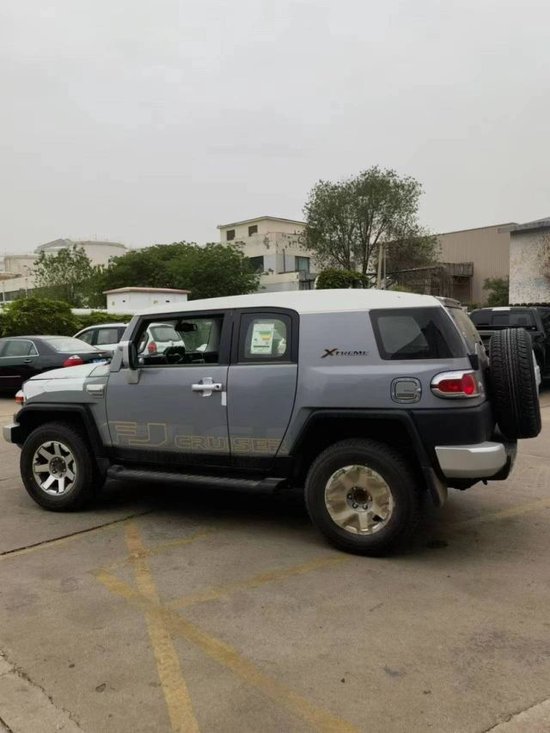 22款中东版丰田FJ 4.0,烟灰蓝/黑,8气囊 JBL音响 双差速锁 17轮 雾灯 银色把手 镀铬套件 后雷达 脚踏 双油箱 防眩目后视镜 倒影 胎压监测 指南针 水平仪 数码时钟 多功能方向盘 坡辅防侧滑 遥控钥匙 双色方向盘 车身贴字