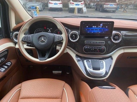 这款奔驰威霆七座商务车驾驶舱的中控太过朴素,升级同款V260大屏、多媒体导航、触摸板,真皮方向盘,甚至连中控饰板是换成碳纤装饰,整体看上去是不是顺眼很多。 咨询电话:4009609396 (预约后可视屏看车)