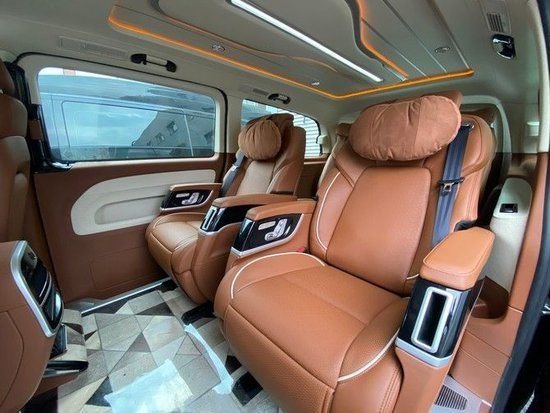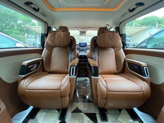 这款奔驰威霆七座商务车大灯、轮毂以及电动门的升级也非常必要,5400*1928*1890mm的条件,内部空足够宽绰了。