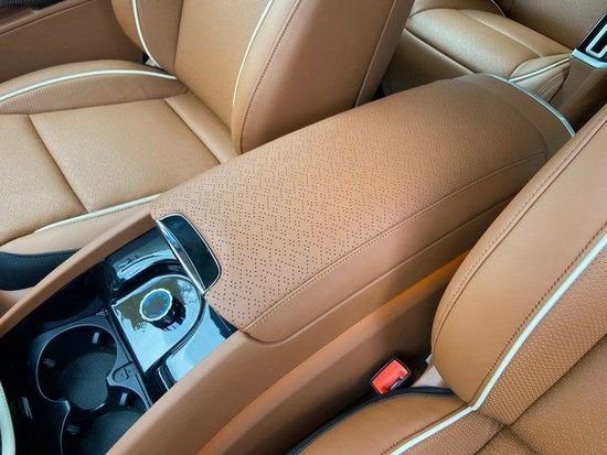 这款奔驰威霆七座商务车为满足长途出行,一台倚靠更舒适的中央扶手箱也同样配备,内置隐藏冰箱,温区可调,非常实用。