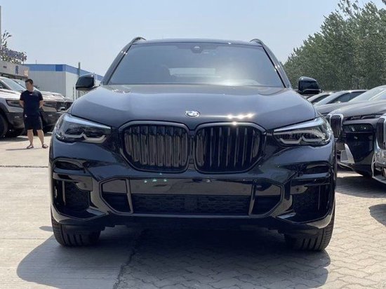 新款宝马X5 (配置|询价)不仅延续了宝马家族式的设计,也添加了不少全新的设计,车头宽大厚重,前脸标志性双肾型进气格栅做了加大处理,两侧连接大灯组,外观做了开眼角处理,上下两条LED日间行驶灯做了上下眼眉,两组大型的远光灯被箭头式造型勾勒,下面的进气口采用大嘴式设计嘴角连接L型雾灯区。