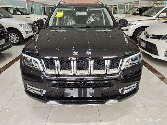 北京BJ90基本延续了旧款车型的造型设计,前脸的进气格栅依旧通过宽厚的镀铬装饰填充,形成五孔造型,底层则是采用黑色的网状结构包裹。两侧平行四边形样式的大灯组与进气格栅融为一体,灯腔内配备氙气远光灯光源,而L型LED日间行车灯则位于灯组顶部。 前包围区域通过棱角分明的镀铬条装饰,呈现出三段式布局,梯形样式的下进气口内部同样采用黑色网状结构填充。
