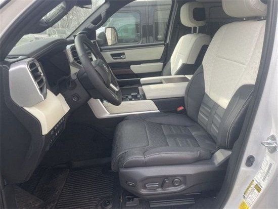 2023款丰田红杉内饰采用了人造木板或光面漆装饰。座椅材质可选择织物、SofTex、皮革、TRD Pro Softex 和半苯胺皮革。根据不同等级,中控屏尺寸从8英寸到14英寸不等,配备了Toyota Audio Multimedia 系统,拥有无线 Android Auto 和 Apple CarPlay功能。