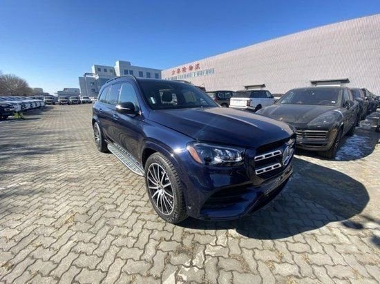23款奔驰GLS450 蓝/咖 手续齐当天票配置:6座 金属漆 全景 抬头显示 AMG包 暗夜包 22轮(自适应阻尼系统 ) 踏板 棕色胡桃木内饰 黑内顶 多功能运动方向盘 镀铬后备箱门槛 尾翼 轮毂锁 冷热杯架。