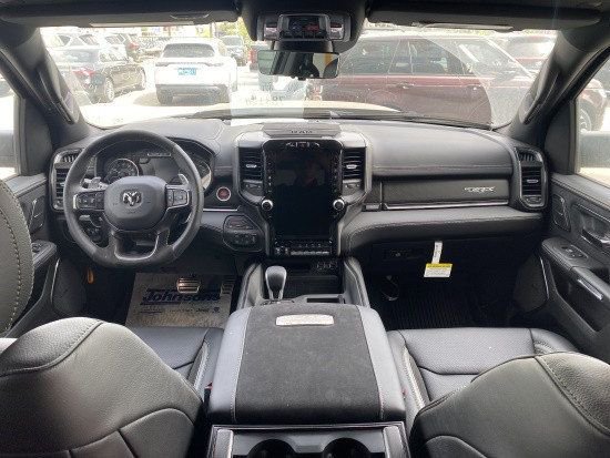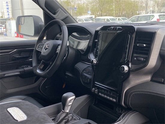 23款全新道奇霸王龙TRX在内饰部分进一步强化了其高性能版本的形象,中控台和座椅随处可见的TRX标识便是最好的例证