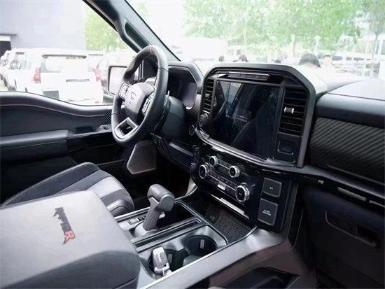 内饰方面也基本延续了F-150 Raptor的设计,中控布局依然是霸气(粗狂)的造型,三幅式方向盘搭配12英寸的SYNC 4 信息娱乐中控车机系统,可支持Apple CarPlay、Android Auto蓝牙、导航、车载Wi-Fi等功能。车内标配的Recaro座椅采用了黑色皮革和Alcantara麂皮两种材质,也印有“Raptor R”徽章