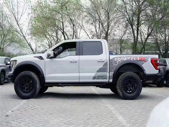 外观方面,新车同F-150 Raptor基本相似,依然是美式肌肉的感觉,只是在细节部分有所调整,硕大尺寸的黑色中网内部镶嵌着FORD四个字母,右下角有着身份标识的红色R徽章,两侧的大灯组和中网相连接,C型的日间行车灯和大灯造型融为一体,再加上分层的前包围设计,整个前脸透露着凶狠和强大的视觉冲击力。