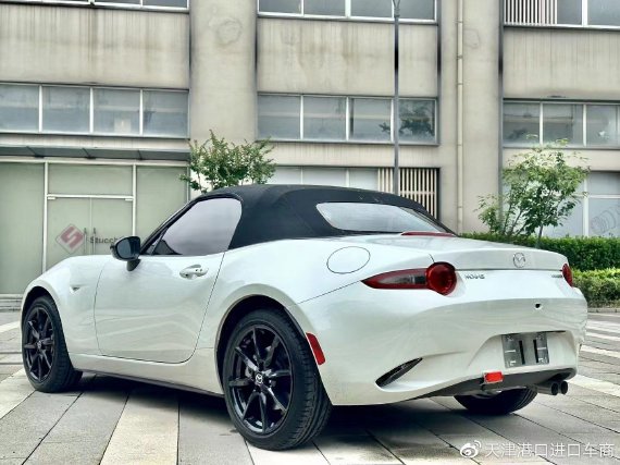 马自达MX-5车身侧面,拥有十分流畅的线条,实拍车辆为硬顶敞篷,由于跑车乘坐两人的特殊设计要求,显得整个车头的引擎部分比较修长。侧面就是跑车的设计,配备了铝合金轮毂,轮毂的样式也很有质感。