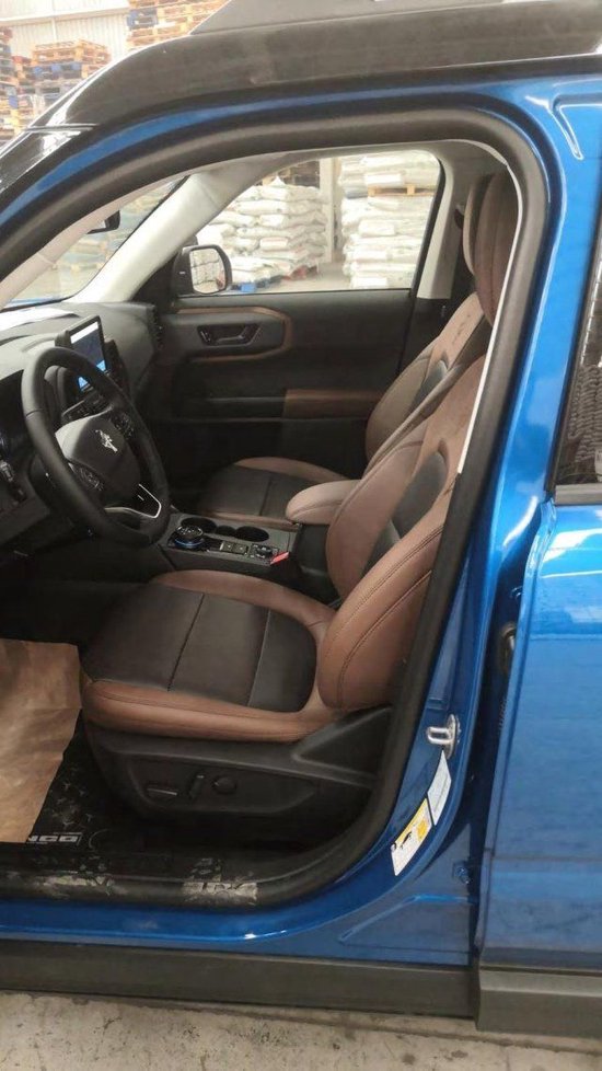 福特Bronco Sport烈马运动 22款 2.0T Badlands荒地 蓝/棕 墨西哥版-现车 配置:2.0LTurboEcoBoot发动机,245马力,8速变速箱,4X4牵引,换挡拨片,发动机启停,越野道路校准悬架,7种越野模式选择,差速锁,电动助力转向,坡道辅助,行人碰撞主动刹车,反向传感器,180度自动清洗摄像头,车道保持,高级牵引控制RSC,ABS/EBD,碰撞制动预警系统,防盗系统,9气囊,自动收紧三点安全带,盲点检测BLIS,6.5寸数字仪表,胎压监测,温度显示,MOLLE型密封系统,SecuriCode®访问按钮,电动车窗,隐私玻璃,二排扶手,遥启,电动加热自动调光后视镜,AUT自动LED大灯,LED雾灯,日间行车灯,电子手刹,阅读灯,旋钮换挡,全气候脚垫,Bronco标,真皮加热方向盘,音频巡航定速,11V400W电流传感器,12V充电口,二排储物格,拖车钩,行李轨,Bronco灰色格栅,17寸全地形越野轮,双色顶棚,全尺寸备胎,无线充电,Wifi热点,8寸触摸中控屏,BO高级音响,USB充电,智能卡,自动空调,真皮带座椅加热,8向主电动6向付电动座椅调节,后排折叠座椅