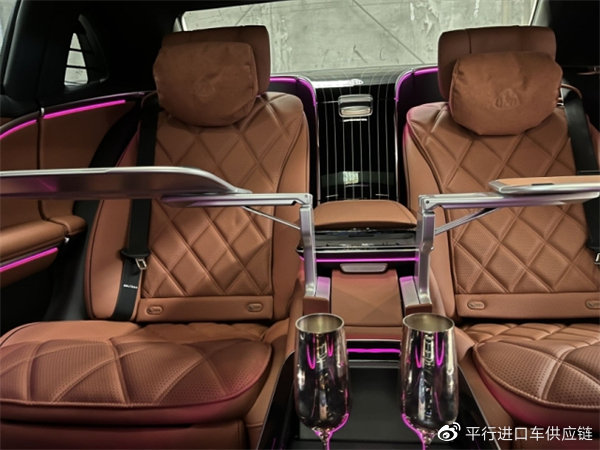 配置:四座行政后排座椅包(带中控台的后排座椅 后排座椅折叠桌 温度控制后杯架 后排电动门 后排冷藏箱 银香槟杯 高端内饰包),数字流星雨大灯,大柏林音响,10度后桥转向,U61手工真皮包(15000),20寸迈巴赫独家锻造轮毂,黑色纳帕内顶,钢琴黑色流线装饰,迈巴赫专属纯银高脚杯2个,手势控制,迈巴赫专属双腿托,行政小桌板,玫瑰金钥匙,底盘升降,抬显,环影,雷达测距,迈巴赫专属翻毛皮皮顶。详情配置单可添加销售经理工作微信发送电子版。