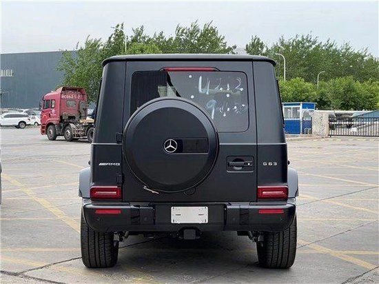 23款奔驰G63硬朗的方盒子造型,没有多余的弧度、没有任何曲线,眼光所及满是直锋利的线条,就连车顶上的导雨沟槽,也是沿着车顶周围一圈,分外焊接上去的金属槽,车门搭钮更是绝不虚心,硬挺挺地屹立在门缝之外,外凸的轮拱、造型如同 梯形的引擎盖。