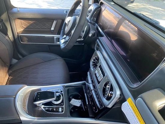 大G虽然是硬派越野车,但内饰方面一直以来都是非常豪华,而新车的内饰更是堪比奔驰S级 (配置|询价)(参数|图片)(参数|图片),采用了NAPPA真皮内饰,触摸感非常好,在细节处也应用了大量的碳纤维内饰,现代感十足,奔驰非常出名的三把差速锁和操控区的小鼠标等依旧可见,不同的是,中控区两块12.3英寸的液晶屏采用了连屏的设计,视觉上非常震撼,科技感得到大幅度的提升,全新的旋涡状的空调出风口也更有设计感,精美大气,车内还搭载了柏林之声高级环绕立体音响、64色氛围灯等高端配置。