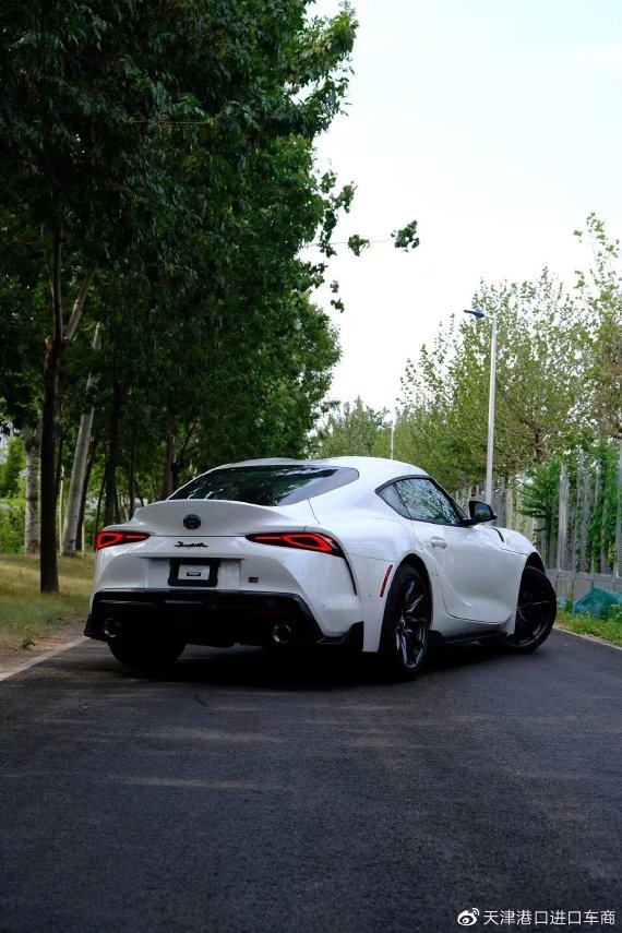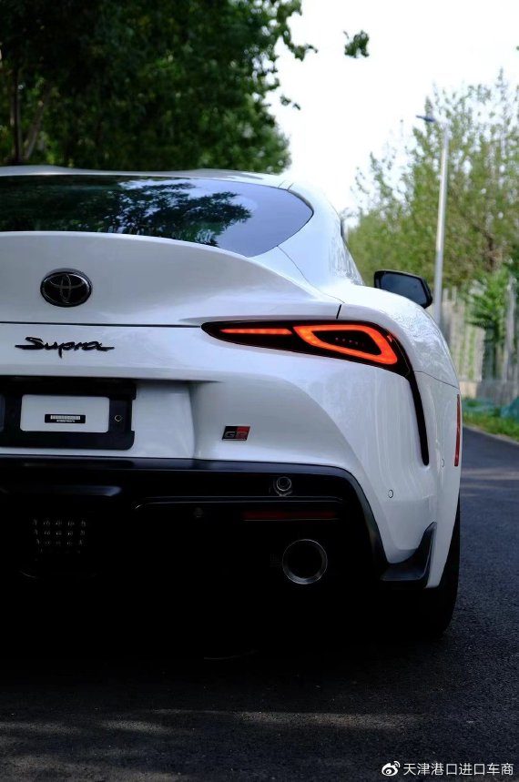 丰田GR SUPRA手动档车尾采用一体式尾翼设计,并且后面翘起幅度很大,另外两侧是凯美瑞式的独特钣金结构,整个尾灯比较小巧。车尾下包围带有扩散器,两侧双出排气布局加上熏黑处理的细节运动感满满。