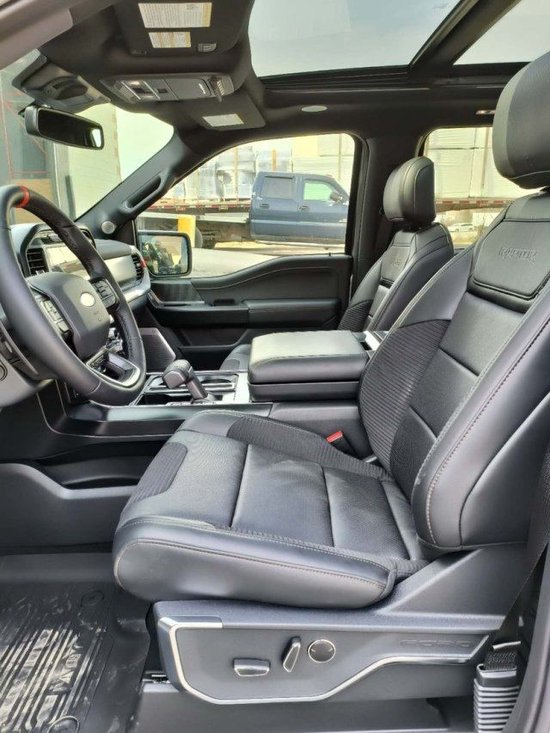 福特猛禽F150内饰采用独特的中控台和门饰板面漆和真皮包裹的方向盘。中控台部分辅以银色饰板装饰,六指针仪表盘的设计有些后工业时代的复古风格。采用带电冷热功能的可记忆式皮革座椅,头枕四向可调,搭配铝饰条和黑色钢琴烤漆内饰可电动升降的后窗带隔板和电热除霜功能。