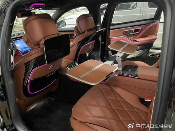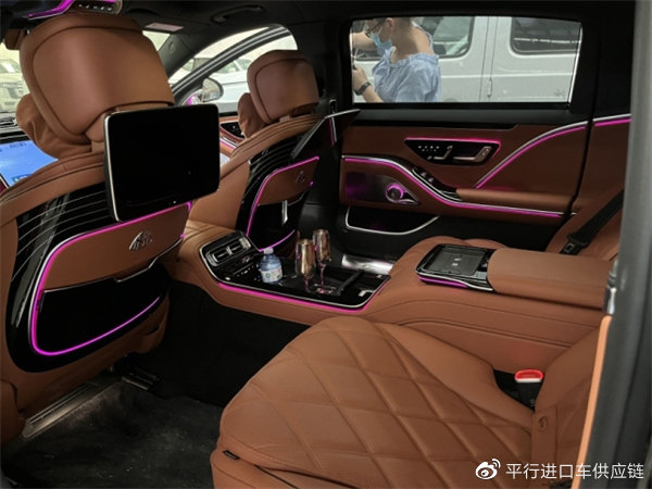 配置:四座行政后排座椅包(带中控台的后排座椅 后排座椅折叠桌 温度控制后杯架 后排电动门 后排冷藏箱 银香槟杯  高端内饰包),数字流星雨大灯,大柏林音响,10度后桥转向,U61手工真皮包(15000),20寸迈巴赫独家锻造轮毂,黑色纳帕内顶,钢琴黑色流线装饰,迈巴赫专属纯银高脚杯2个,手势控制,迈巴赫专属双腿托,行政小桌板,玫瑰金钥匙,底盘升降,抬显,环影,雷达测距,迈巴赫专属翻毛皮皮顶。详情配置单可添加销售经理工作微信发送电子版。