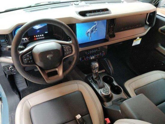 23款福特烈马Bronco车内采用硬朗的设计风格,中控台设计主次分明且有层次感,用料也厚实,多功能方向盘造型运动,中控屏幕采用内嵌式的设计增添了车内的时尚感,按键布局合理,档把设计精致,座椅宽大厚实,空间宽敞,实用性强。