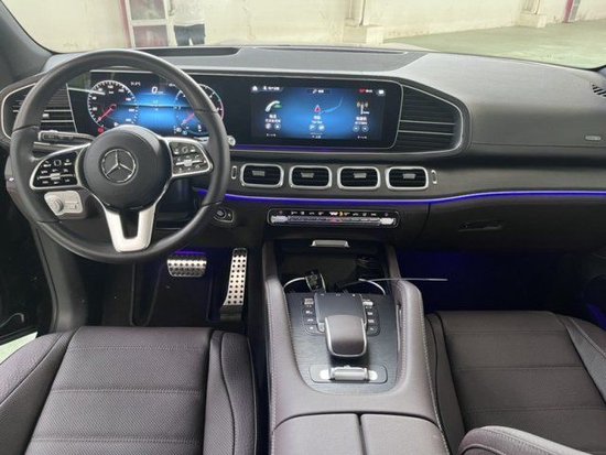 奔驰全新GLS 350d内饰采用了最新家族式布局,双12.3英寸液晶屏,有效地提升了内饰的科技感与豪华感,值得注意的是,搭载了全新的MBUX系统,取代原先的Command Online系统,MBUX 可以透过手写、语音操作、以及触控面板来进行操作;三幅式多功能方向盘,周围覆盖了钢琴烤漆与银色镀铬,空调造型为方形设计,面板装配了贯穿式银色镀铬饰条,提升了内饰的金属质感。
