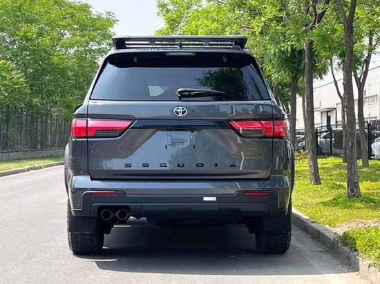 23款 丰田红杉的外观采用了最新的丰田家族式设计语言打造,前脸大尺寸的进气格栅搭配造型犀利的大灯组以及厚重的下包围,整个前脸看起来十分硬派。侧面可以看到它的侧面线条和LX600 (配置|询价)有些类似,不过它比LX600看起来更加的壮实。