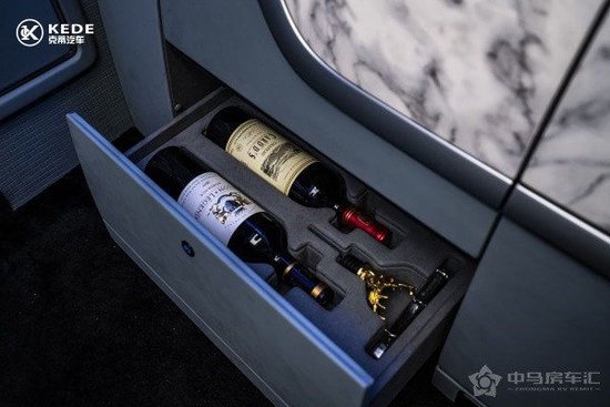 翔翼定制5G网络智能在线系统、娱乐影音、直播唱K、远程视频会议多模式享受。在娱乐屏下还有进口翻转吧台酒柜,隐藏式电动酒樽、隐藏式调酒设备、以及隐藏式电动翻转雨伞。