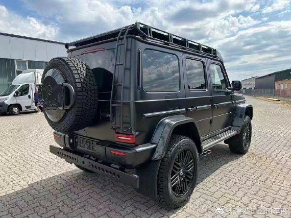 奔驰AMG G 63 4X4加宽了轮眉,新增加了车顶行李架,并还设置了专门的梯子可以方便拿取行李,尾部备胎也看上去更大,整个新车离地间隙变得更高,尾部还新增了一个辅助保险杠。肉眼可见的越野性能全面提升。作为全新一代的升级,新车拥有G 63车型的包围和AMG专属的Green Hell Magno车漆,展现出强大的性能。