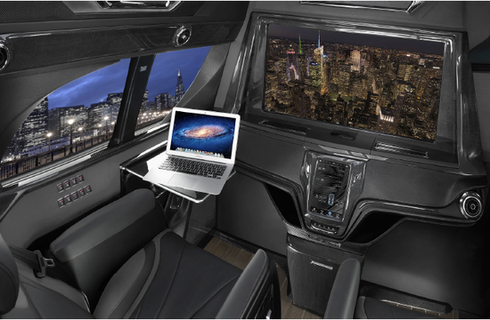 GMC商务车商务中不失科技感,大型瀑布式中控台、非对称式侧墙造型、后排流线型护围、悬浮式扶手台、顶级Harman音响、40“液晶电视、4G移动Wi-Fi、视频会议系统、车载电热水壶、电动折叠桌板、豪华车载冰箱、內镶式电动酒柜、前后路况监视系统,车内电器均可由液晶触摸屏控制,商务功能一应俱全。