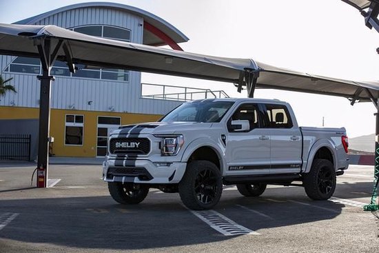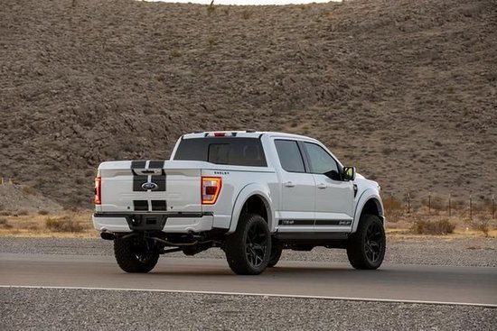 谢尔比正式发布了全新2021款F-150 (配置|询价)谢尔比,并称其为有史以来最强大、最精致、最具竞争力的F-150。该车基于F-150 Lariat四驱版打造而来,外观改造非常具备侵略性,放弃了谢尔比经典蓝白配色,转而采用了视觉差异感更强的白黑色调,采用了冲压空气发动机罩、更具运动性的前保险杠,以及包裹在35英寸全地形轮胎中的22英寸合金车轮,新车还配备了与车身颜色相同的宽大轮眉,黑色侧踏以及谢尔比Logo前格栅。