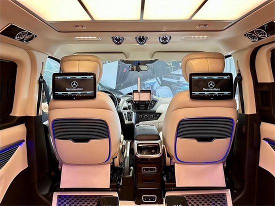 车厢顶部有多级可调的顶灯和64色氛围灯,配合隐私玻璃和车身窗帘,共同实现车内明暗度整体可调。后排空调出风口和音响系统也全部集成在车顶上方。与原厂全顺 (配置|询价)追求极致的空间感不同,克蒂帝亚根据消费者对豪华商务车型的情感与功能需求,与福特进行外观、空间、舒适性的深度定制,确保改装基础车型全方面优势及市场唯一性,为商务通勤和家庭出游场景提供自己的最新方案。