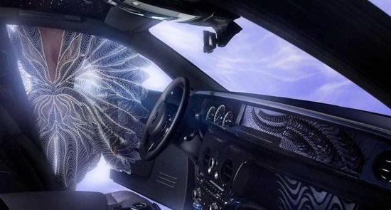 进入到车内,车辆内部的编织水纹星光顶篷同样出彩,设计师们从1000多张皮革中精选整张皮革,并进行手工切割,使车顶内衬拥有一种三维立体感。值得注意的是,幻影Syntopia典藏版生