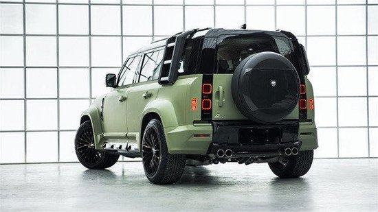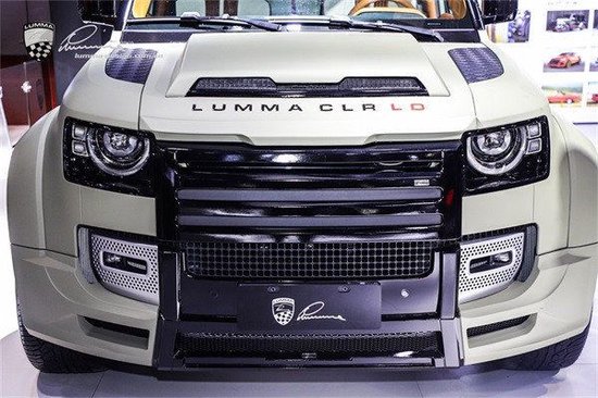 这款基于路虎卫士定制的虏曼挑战者保留了DEFENDER一贯的方正风格,在此基础上融入虏曼独创的宽体设计,台阶式格栅复古经典,同时也有着优化气流走向的作用。在轮拱位置,LUMMA采用了独居空气动力套件的宽体设计,使整车具备更加厚重敦实的气场。