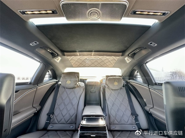 配置:选配:迈巴赫大饼轮毂,菱形格座椅,定制化内饰手工包,金色迈巴赫刺绣,后排娱乐,桃木方向盘,4D大柏林音响,后轮10度转向,电吸门,抬显,菱形格顶蓬,二排腿拖,舒适头枕,魔术视觉控制,前后排座椅通风按摩加热,64色主动氛围灯,四区空调,电动后窗遮阳板,3D仪表盘,定制限量签名等。对比中规多:迈巴赫大饼轮,大柏林,10度后轮转向,全车小牛皮(包括车顶 门把 座椅)中规合成革内饰,菱形格真皮顶棚等。详情配置单可添加销售经理工作微信发送电子版。
