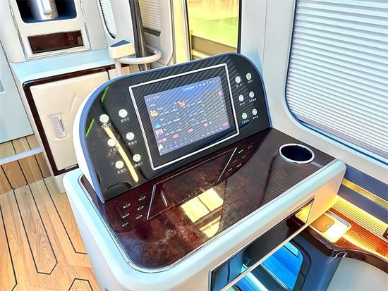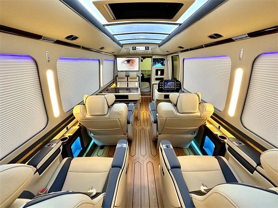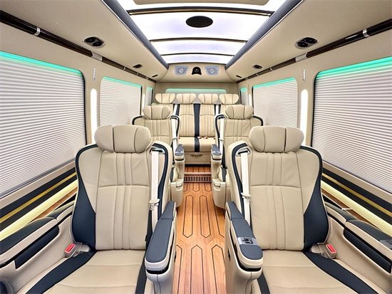 丰田考斯特改装商务车在内饰的设计上还有很多舒适和贴心的设计,座椅的设计不仅仅有数量的不同更是有着座椅材质以及设计的很大差距。从座椅的材质上来说,原车出厂的是织物座椅,在改装的时候我们可以设计为真皮座椅,真皮的材质不同,颜色也有白色,米色和棕色的区别。丰田考斯特改装商务车可以选择的座椅还有可旋转的航空座椅。我们可以转向任何一个方向和我们喜欢人的一起聊天交谈或者游戏,在旅行的过程中享受一种惬意的时光。