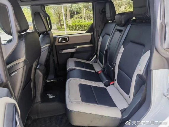 23款福特烈马Bronco车内采用硬朗的设计风格,中控台设计主次分明且有层次感,用料也厚实,多功能方向盘造型运动,中控屏幕采用内嵌式的设计增添了车内的时尚感,按键布局合理,档把设计精致,座椅宽大厚实,空间宽敞,实用性强。