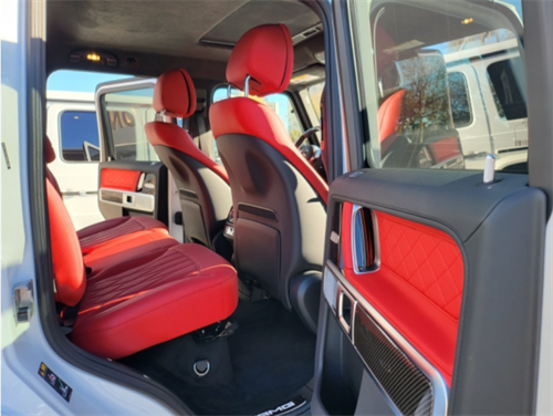 韩版G63标配解析:4.0T双涡轮 V8、585匹马力、9速手自一体,可变悬挂、雷达测距、前后电眼、360环影、滑动天窗、AMG运动外观套件、一键启动、踏板、电动真皮多功能方向盘带记忆、换挡拨片、全液晶仪表盘、主副驾驶电动座椅带记忆、前后座椅加热、柏林之声音响、几何多光束LED大灯、64色氛围灯、大灯清洗、电动折叠加热后视镜、感应雨刷、并道辅助、车道偏离预警、胎压监测。
