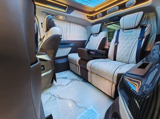 全新23款奔驰V260L外观变化不大,前脸是后期我们升级成了迈巴赫套件,换装的轮毂式样也更加激进,全车的隐私玻璃时标准商务车的配置。主副驾驶以及侧门都做了软包隔音处理,整个奔驰V260L商务车的驾驶舱都采用奔驰新款轿车的设计风格,豪华感浓郁,V260L全新的悬浮显示屏升级为触屏控制,驾驶舱视野开阔。
