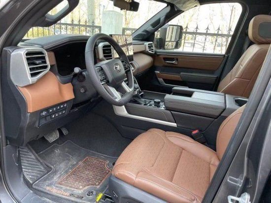 23款丰田坦途1794版在内部设计上,座椅全部采用真皮制作,方向盘和档把为桃木制作坦途皮卡肌肉感的设计同样延续到内饰的设计中。