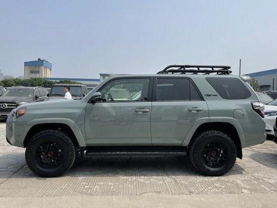 全新4Runner丰田超霸侧面来看,4Runner整个车身造型看起来较为方正,而方正的轮框设计看起来也更加硬派,宽大的D柱更是增加了几分硬汉的味道,不过还是那句话,这个汉子相比普拉多真的要细腻许多,车身尺寸方面,这辆车的长宽高分别为4823*1925*1885mm, 轴距2790mm,外观尺寸长度和普拉多基本一样,车子比普拉多矮一点,宽一点。