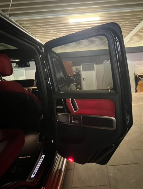配置:特殊大暗夜套件包、熏黑几何多光束大灯、熏黑20寸合金轮毂、熏黑外后视镜、熏黑尾灯、熏黑周身防撞饰条、AMG包、全尺寸备胎、驾驶员辅助包、车身同色不锈钢备胎罩、前后行车雷达、停车辅助、360环车影像、G系专属隐形天窗、私密玻璃、大拖车勾、AMG自适应阻尼悬架、100升大油箱、高级黑耀鹿皮顶棚、碳纤维内饰包(碳纤维仪表盘装饰板、碳纤维门板装饰、碳纤维中控装饰)多色氛围灯、定制版真皮黑白双拼方向盘、纳帕真皮座椅、前座椅通风加热、热石按摩、后座椅加热、大伯林之声音响、黑钢琴漆内饰、独立多溫区空调、AMG丝绒。橡胶双套脚垫、行李仓便携收纳网、EASY-PACK行李仓盖板