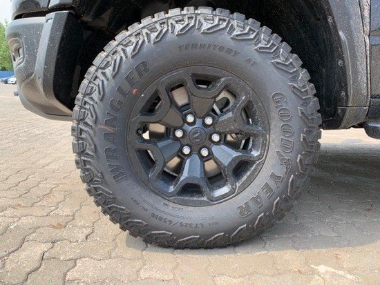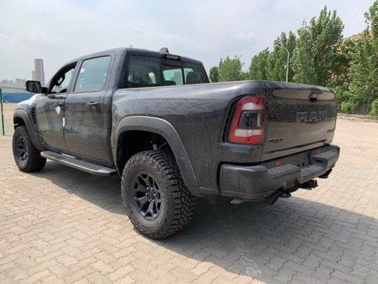 公羊1500 23款6.2TRX霸王龙,新车传承了道奇RAM家族高大威猛的造型设计,同时细节部分融入了更多高性能元素,包括经过黑化处理的前格栅,引擎盖两侧的黑色进气口以及为了容纳巨大的机械增压器而设计的通风口等等。此外,新车还配备了视觉冲击力更强的黑色轮眉和外露式的拖车钩看上去十分霸气[咨询电话在文章底部具体请与经销商联系]