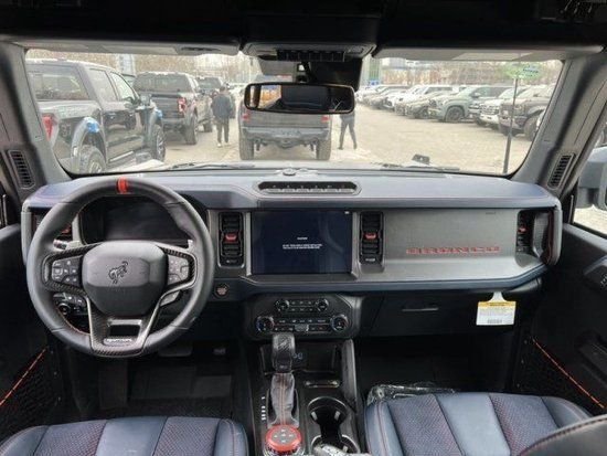 23款福特烈马Bronco 3.0T四门Raptor猛禽车内采用硬朗的设计风格,中控台设计主次分明且有层次感用料也厚实。多功能方向盘造型运动,中控屏幕采用内嵌式的设计增添了车内的时尚感,按键布局合理档把设计精致座椅宽大厚实空间宽敞实用性强。