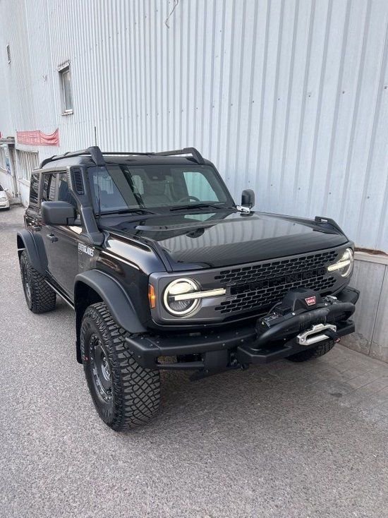 福特烈马车身侧面和牧马人 (配置|询价)处理思路类似,车顶使用了可拆卸的模块化设计,搭配了重型防脱圈轮毂以及百路驰KO2越野轮胎,尾部悬挂有全尺寸越野小书包备胎。